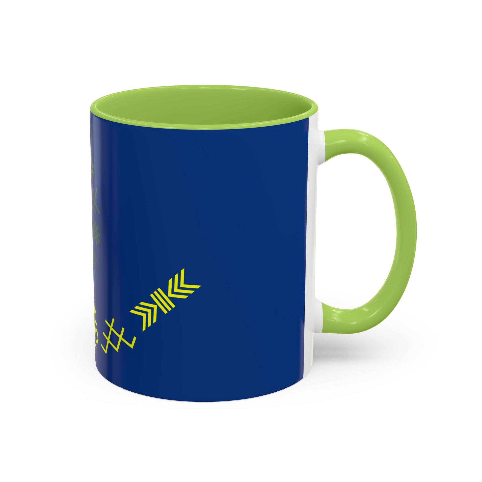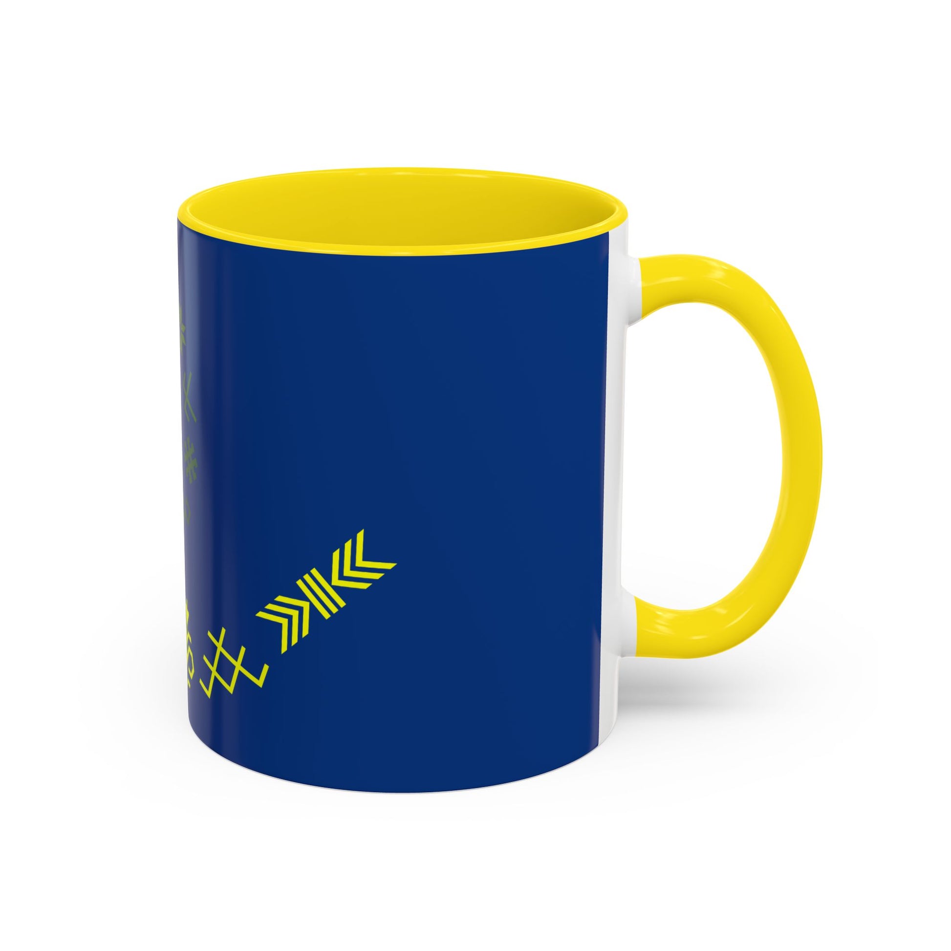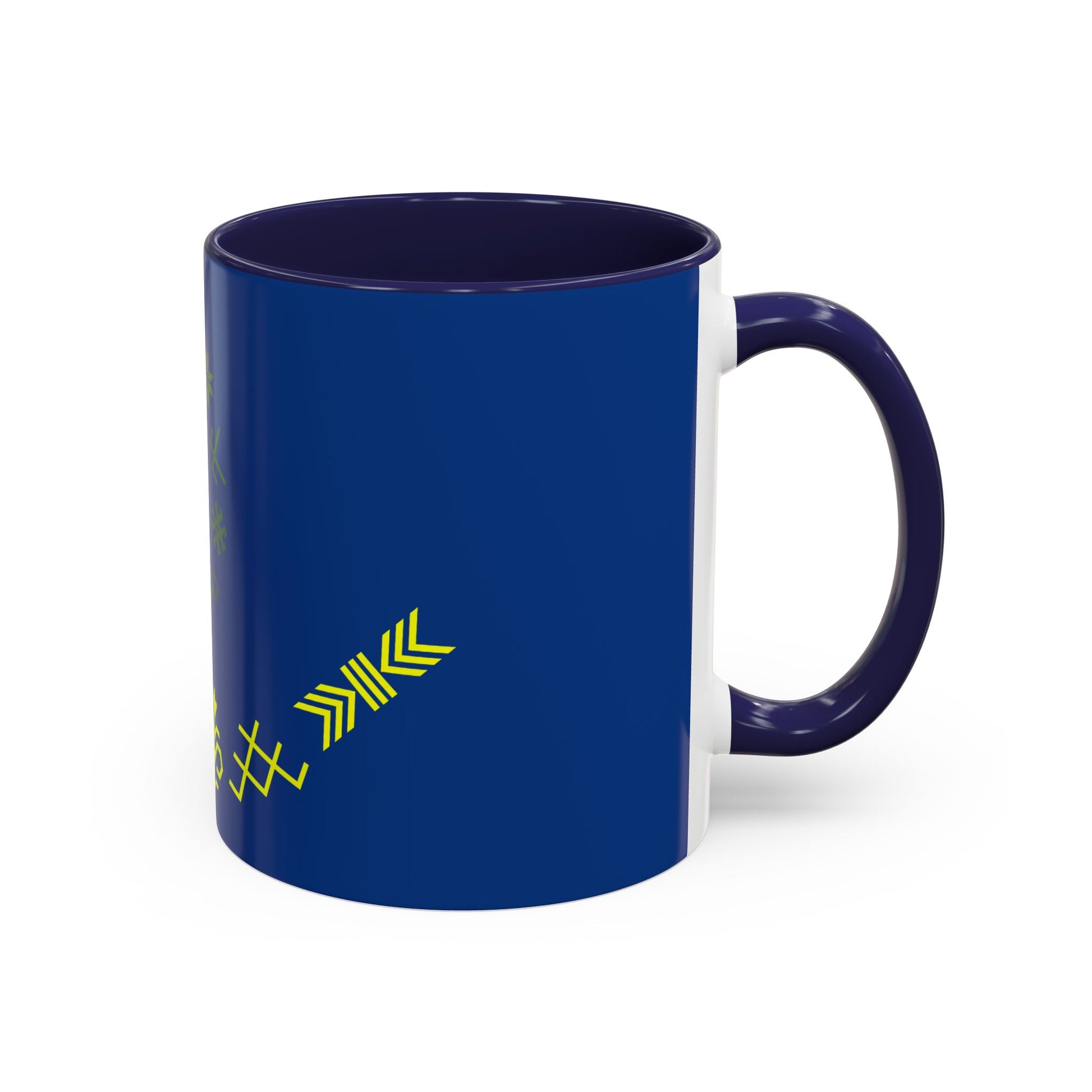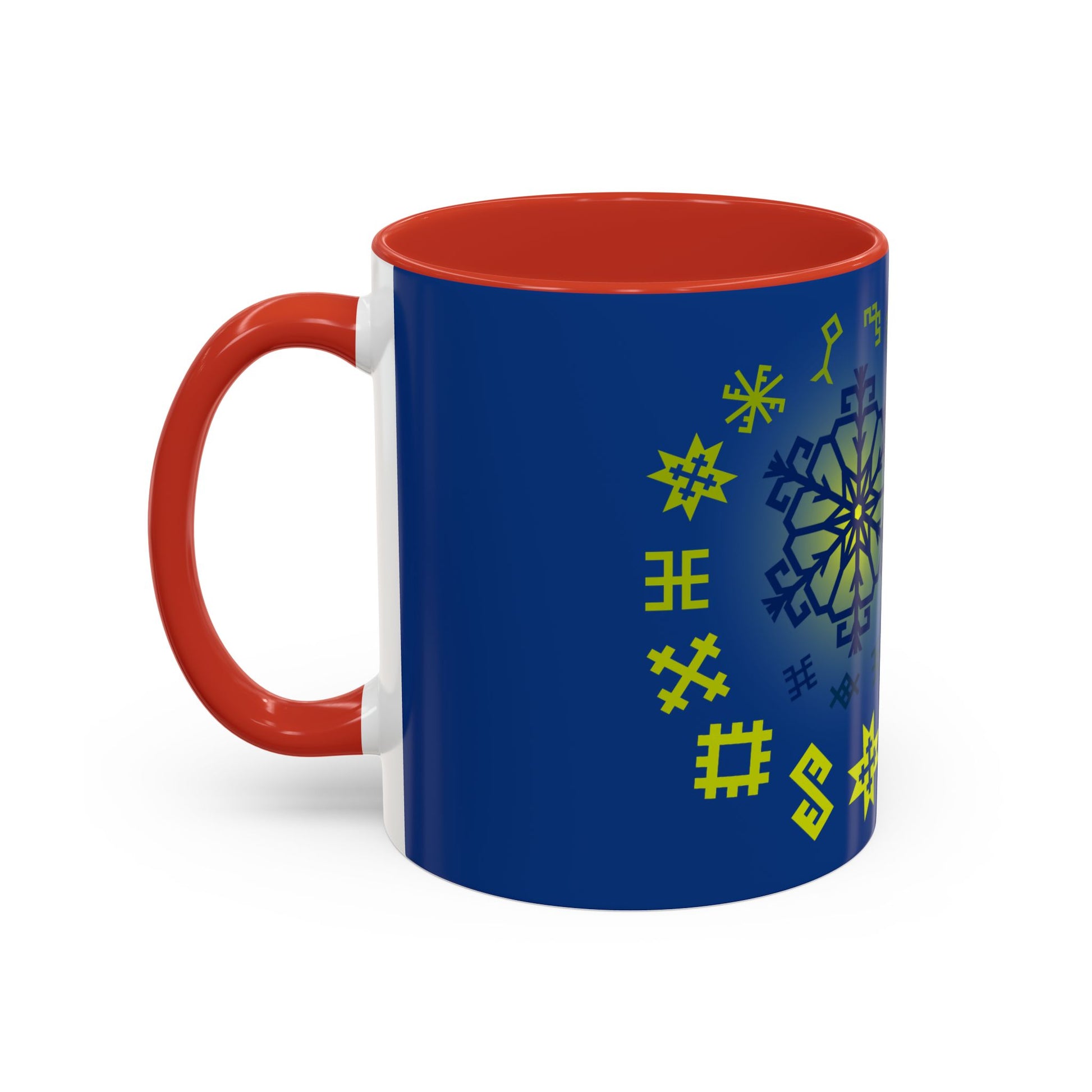 Warmth in hand and a quiet nod to heritage. This ceramic mug pairs a deep navy exterior with a glossy black interior and handle, and a ring of lime-yellow folk motifs that orbit a delicate snowflake-like medallion. It feels like a slow morning ritual in a cozy kitchen — fragrant coffee, soft light, and patterns that spark a memory of handcrafted textiles. Built sturdy for everyday use, it brings a little intentional beauty to routines and small gatherings alike.
