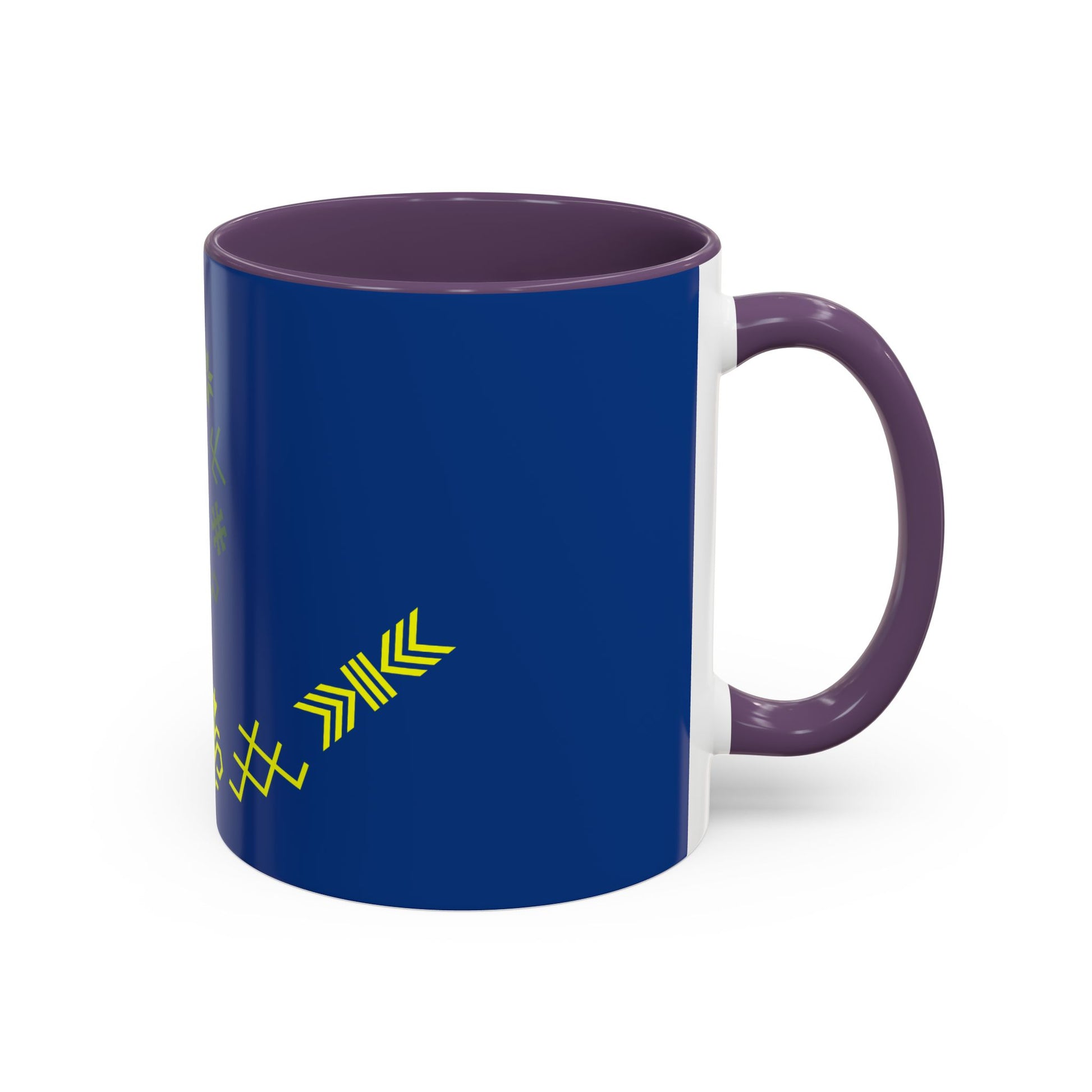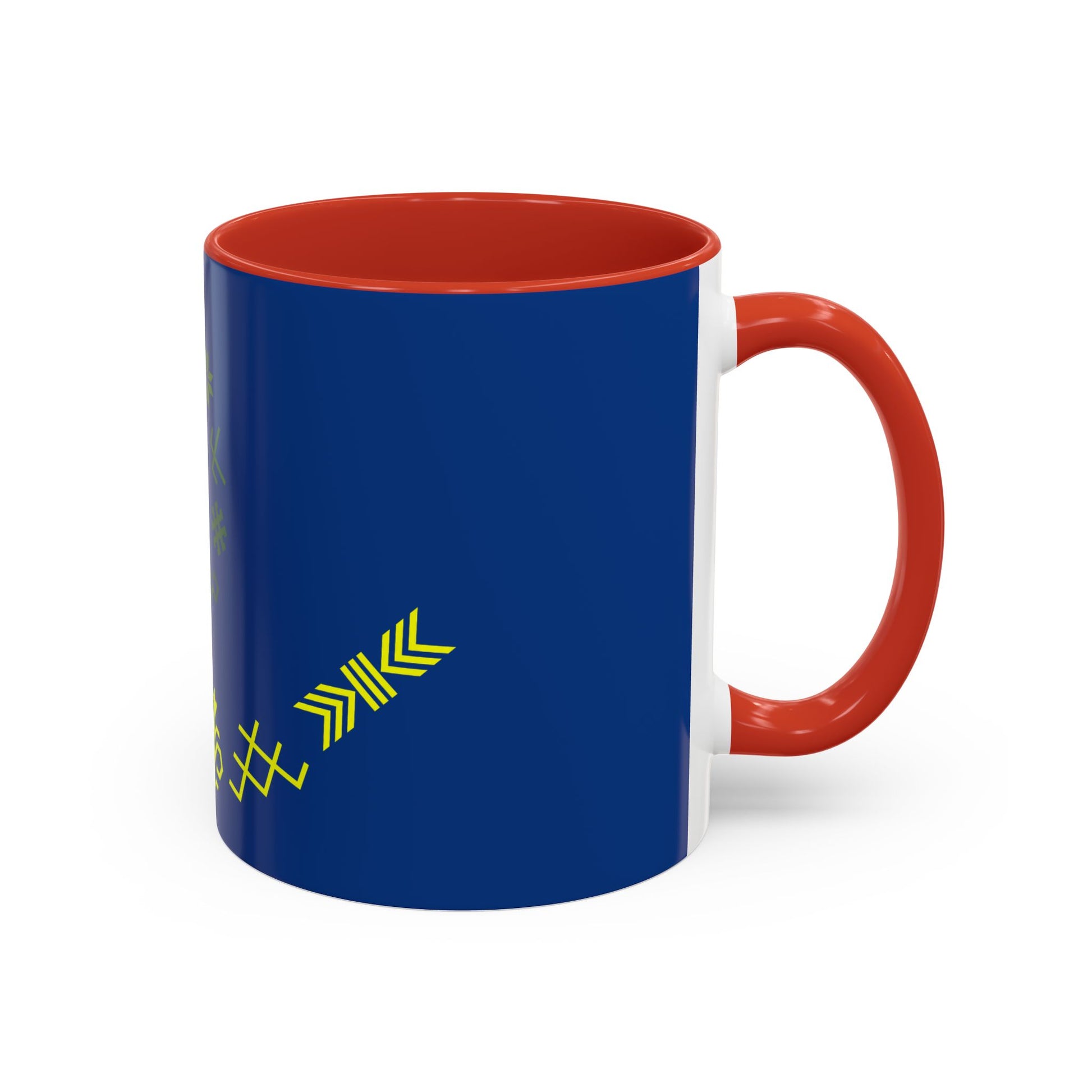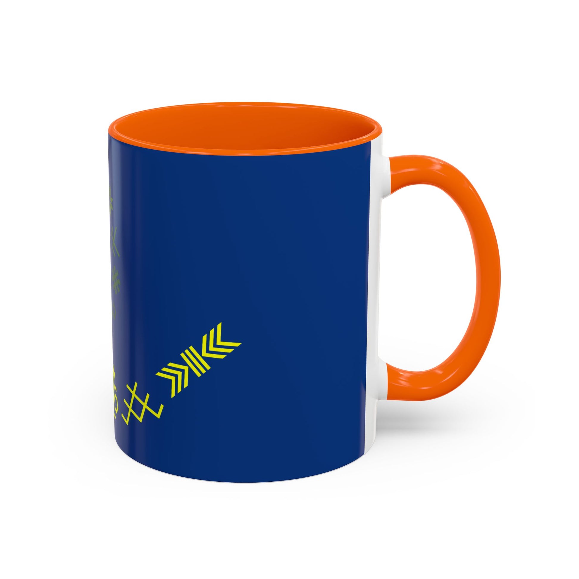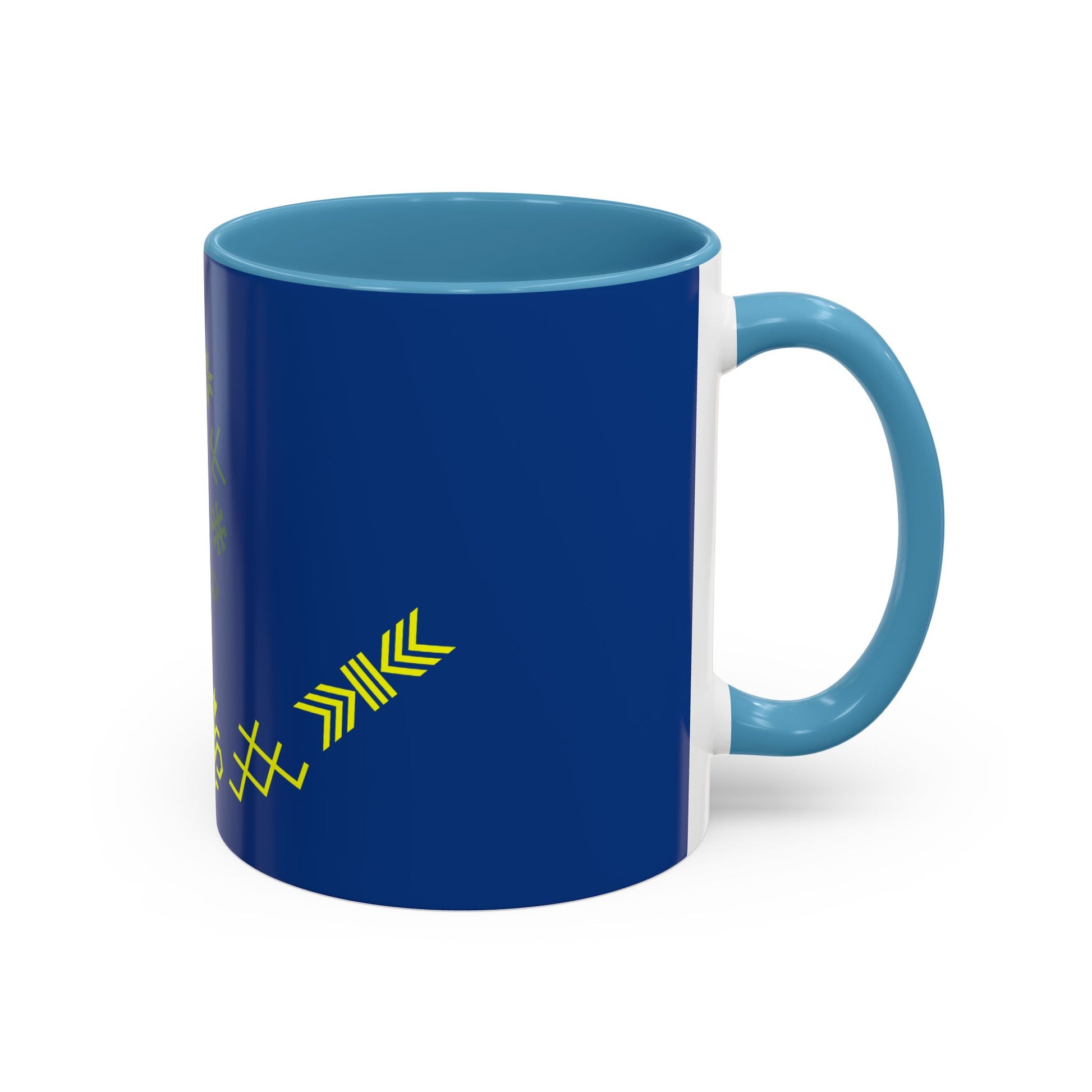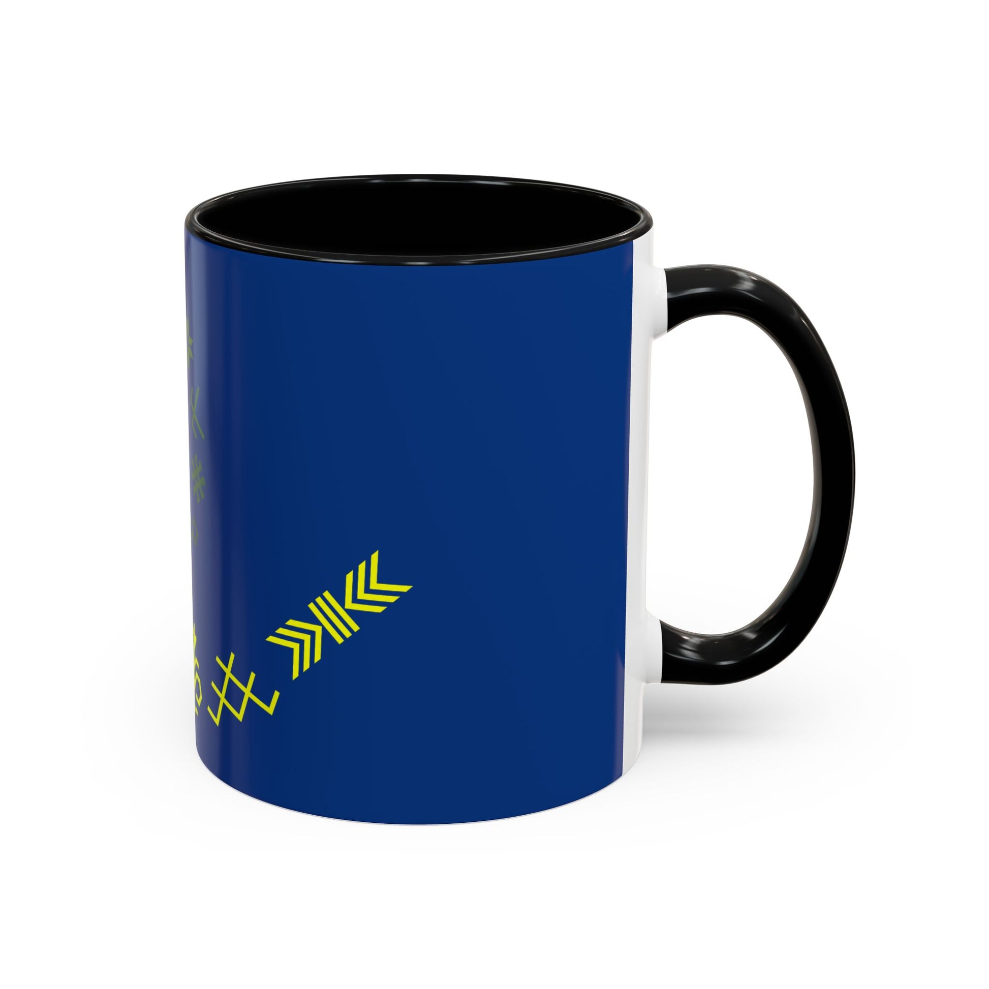 Warmth in hand and a quiet nod to heritage. This ceramic mug pairs a deep navy exterior with a glossy black interior and handle, and a ring of lime-yellow folk motifs that orbit a delicate snowflake-like medallion. It feels like a slow morning ritual in a cozy kitchen — fragrant coffee, soft light, and patterns that spark a memory of handcrafted textiles. Built sturdy for everyday use, it brings a little intentional beauty to routines and small gatherings alike.